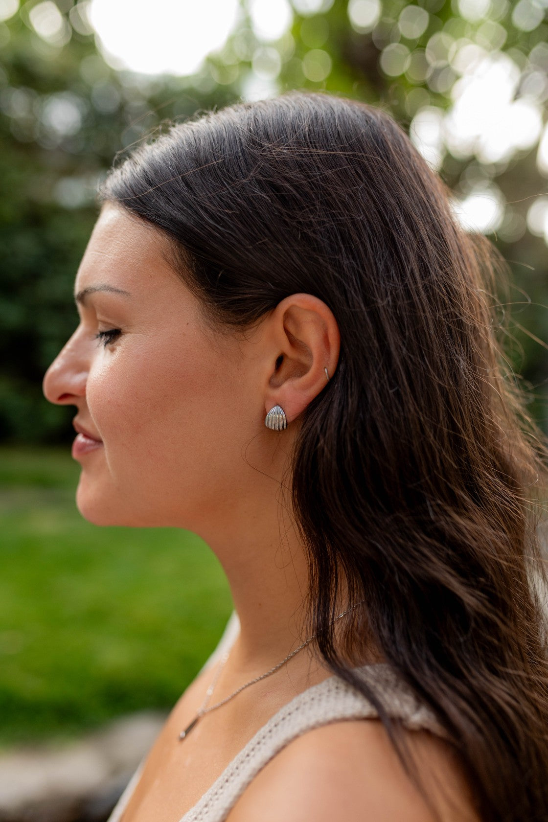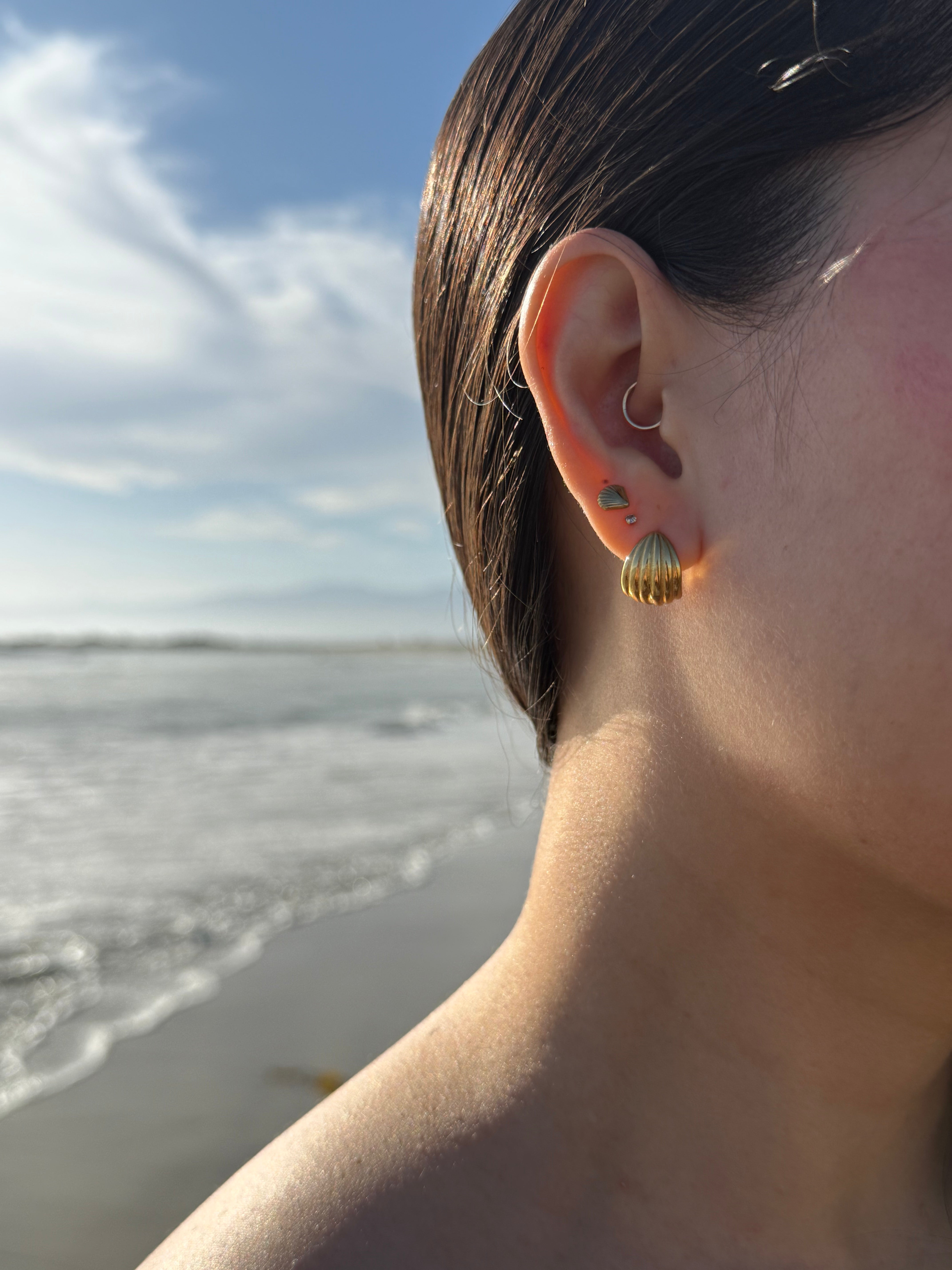 Not too bold, not too subtle — the Cockle Shell Studs are that perfect in-between. Inspired by the natural ridges of cockle shells found along sandy shores, these earrings strike the balance between effortless everyday and statement-worthy shine. Slightly larger than your classic stud, but smaller than a full statement earring — just enough to catch the light without overpowering your look.
