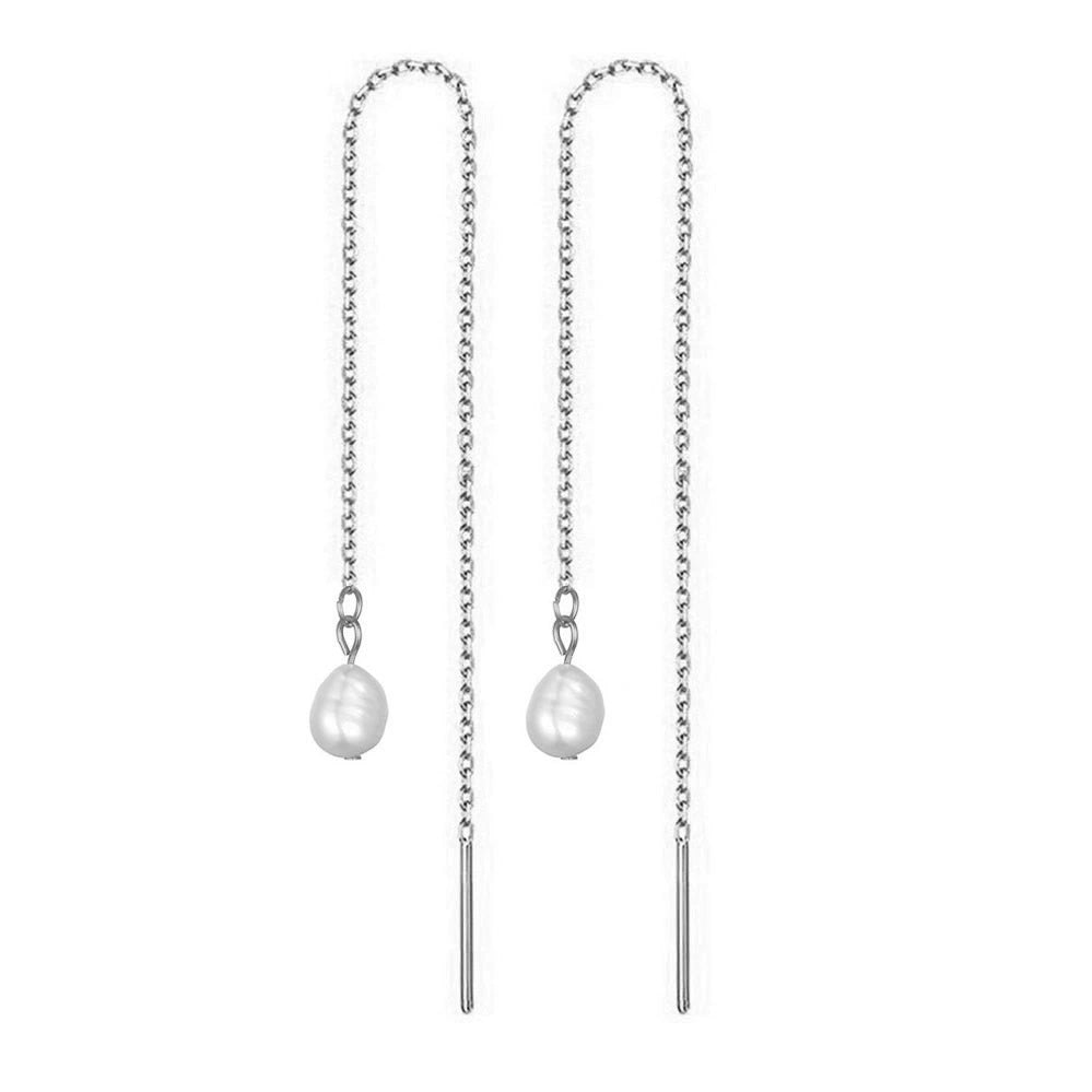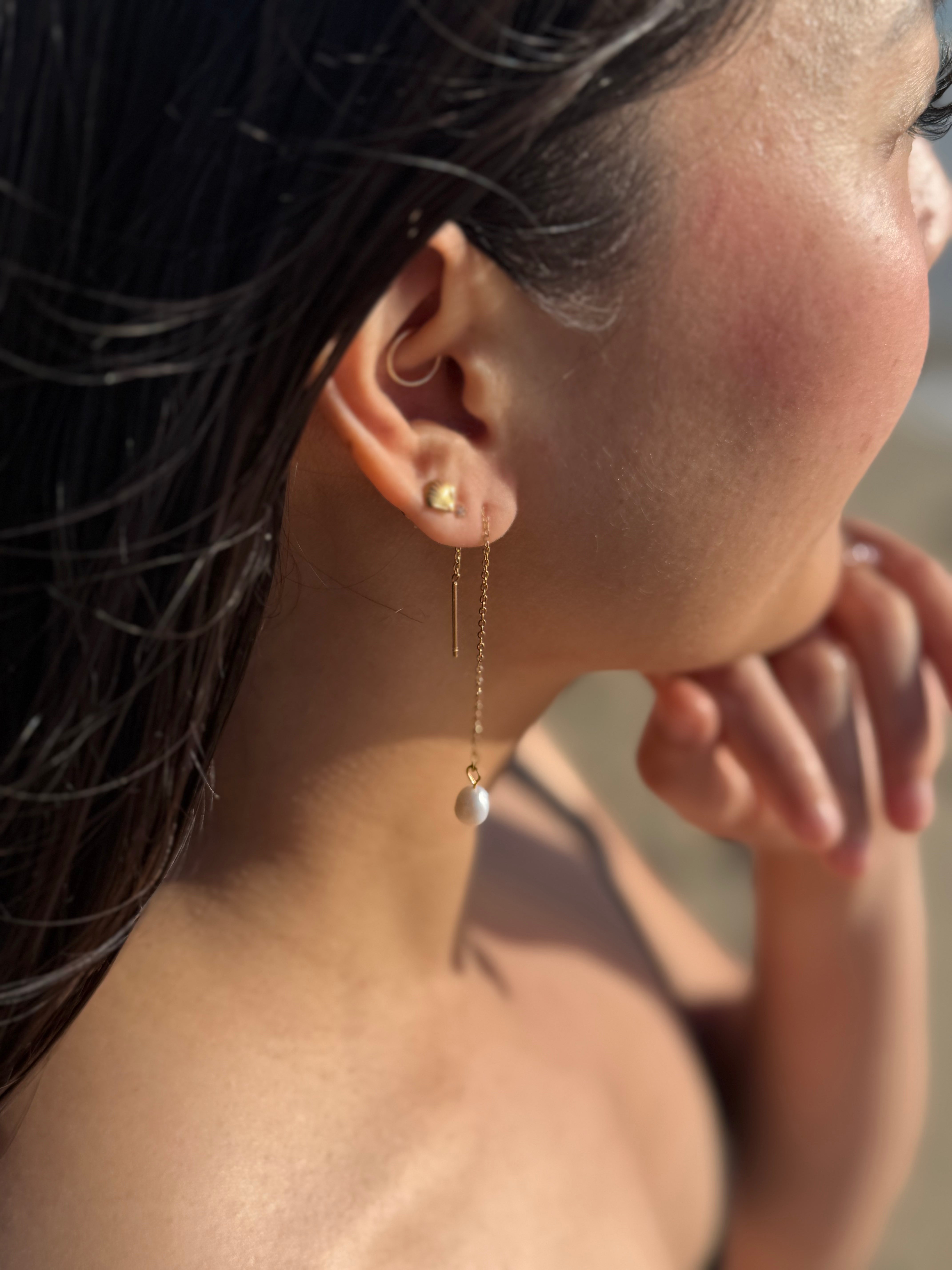 Delicate, luminous, and made to move with you. These Freshwater Pearl Threader Earrings feature genuine freshwater pearls that sway gently on ultra-light, gold-plated chains. With each turn of your head, they catch the light like sun on water. Slide them through for an effortlessly elevated look—soft enough for everyday, bold enough for nightfall.