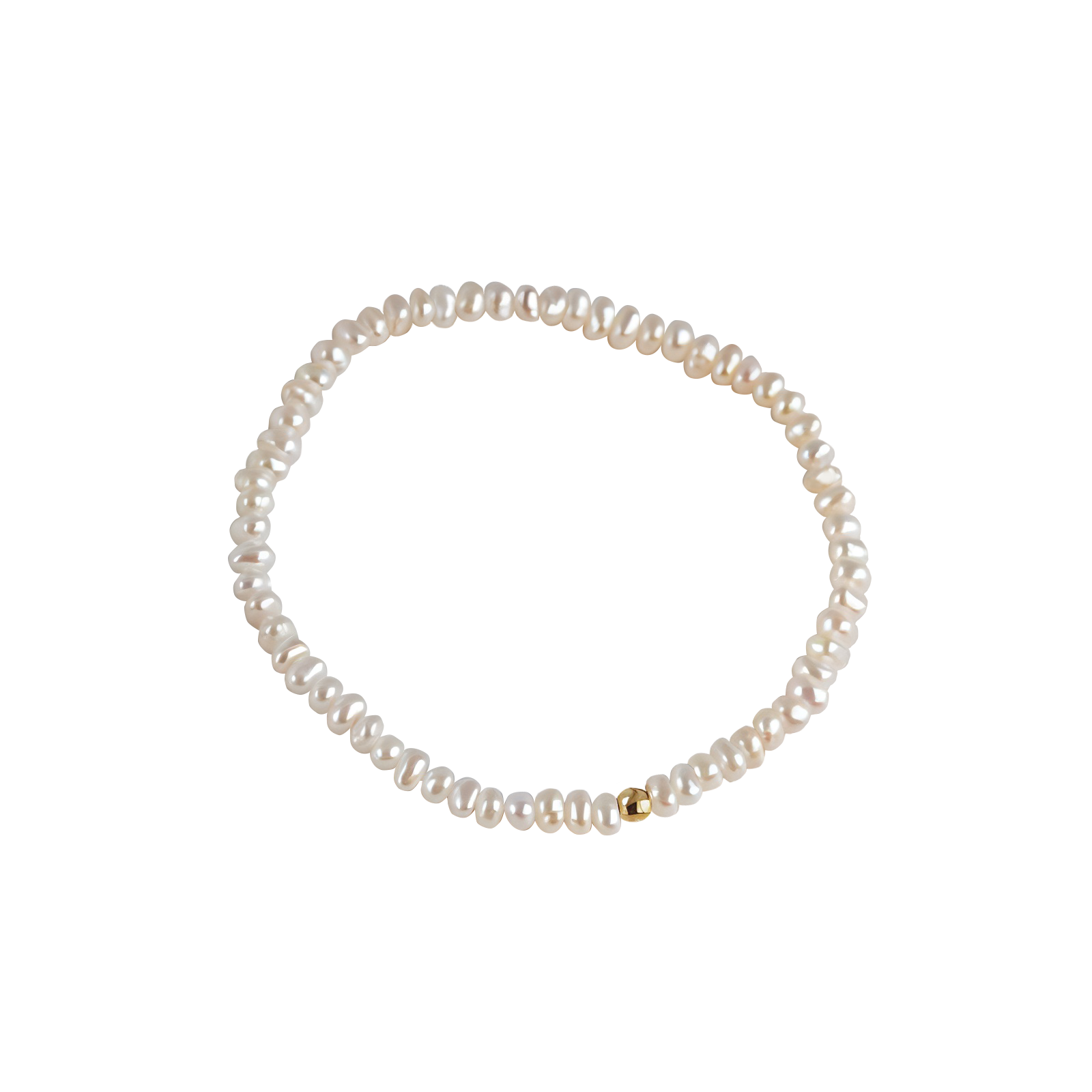 A quiet nod to the ocean, the Minimalist Freshwater Pearl Bracelet is made from genuine 3mm–4mm freshwater pearls, each with its own organic shape and soft, natural luster. Finished with a single gold-toned accent bead, this piece is designed for easy, slip-on wear—no clasp needed.