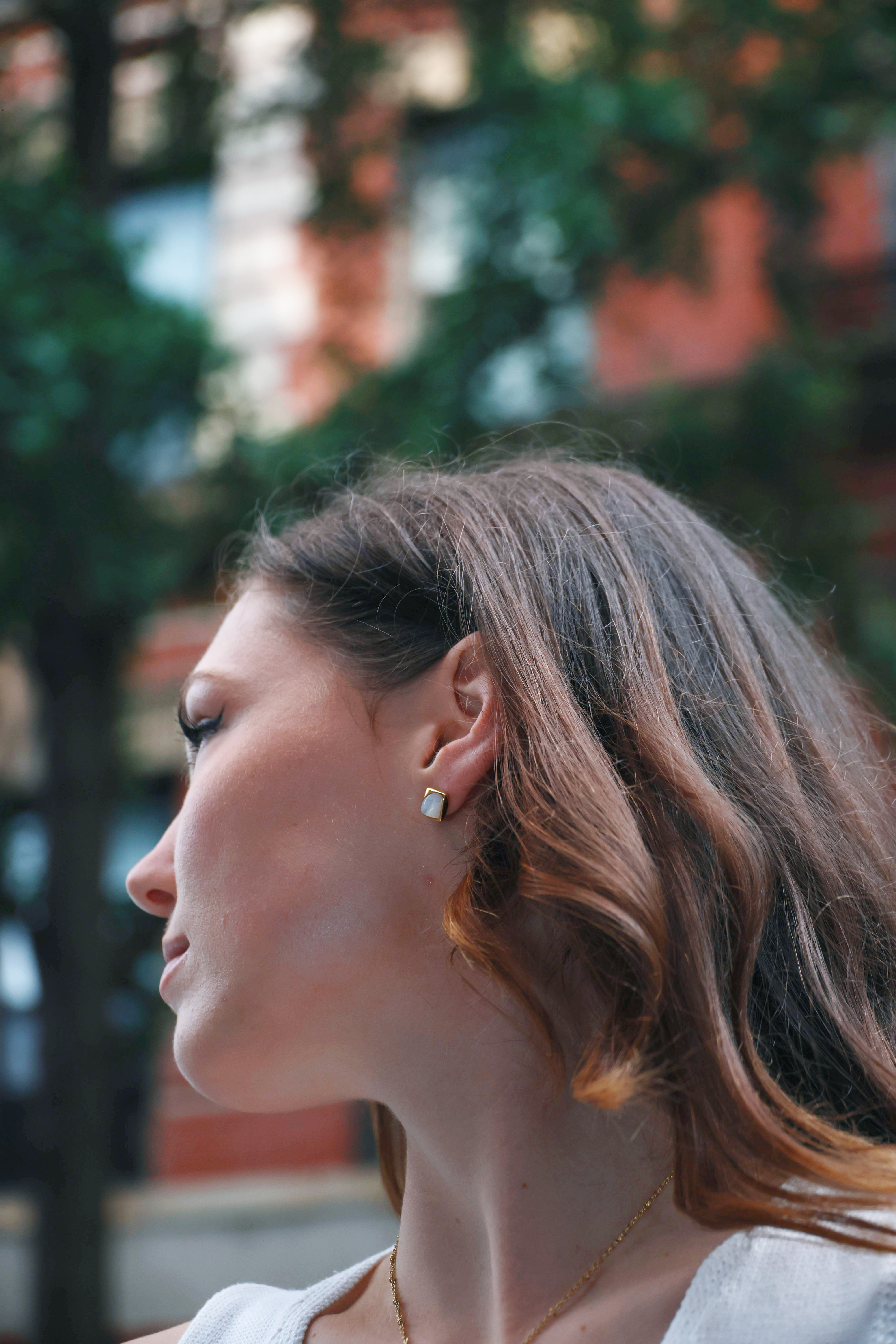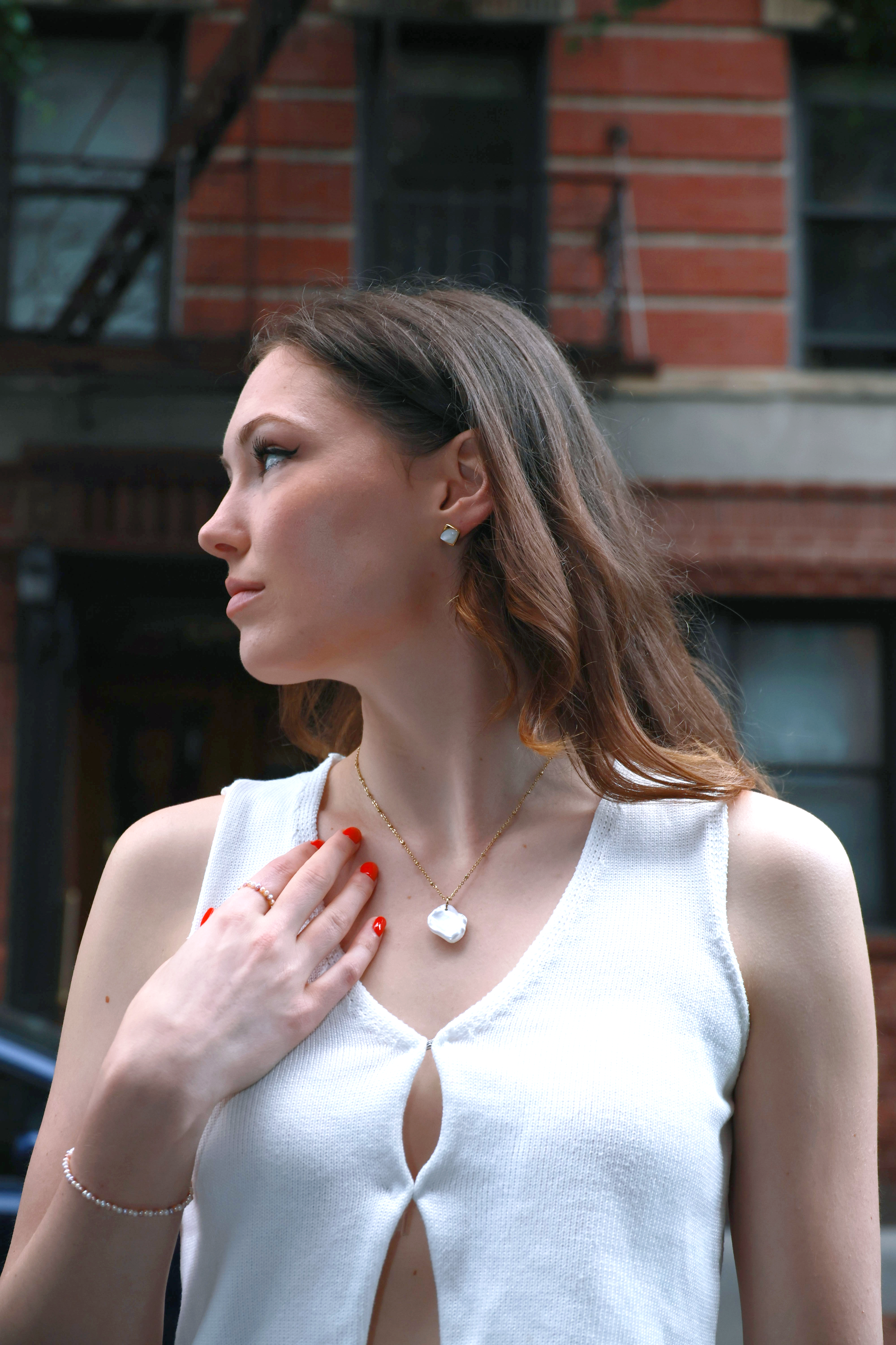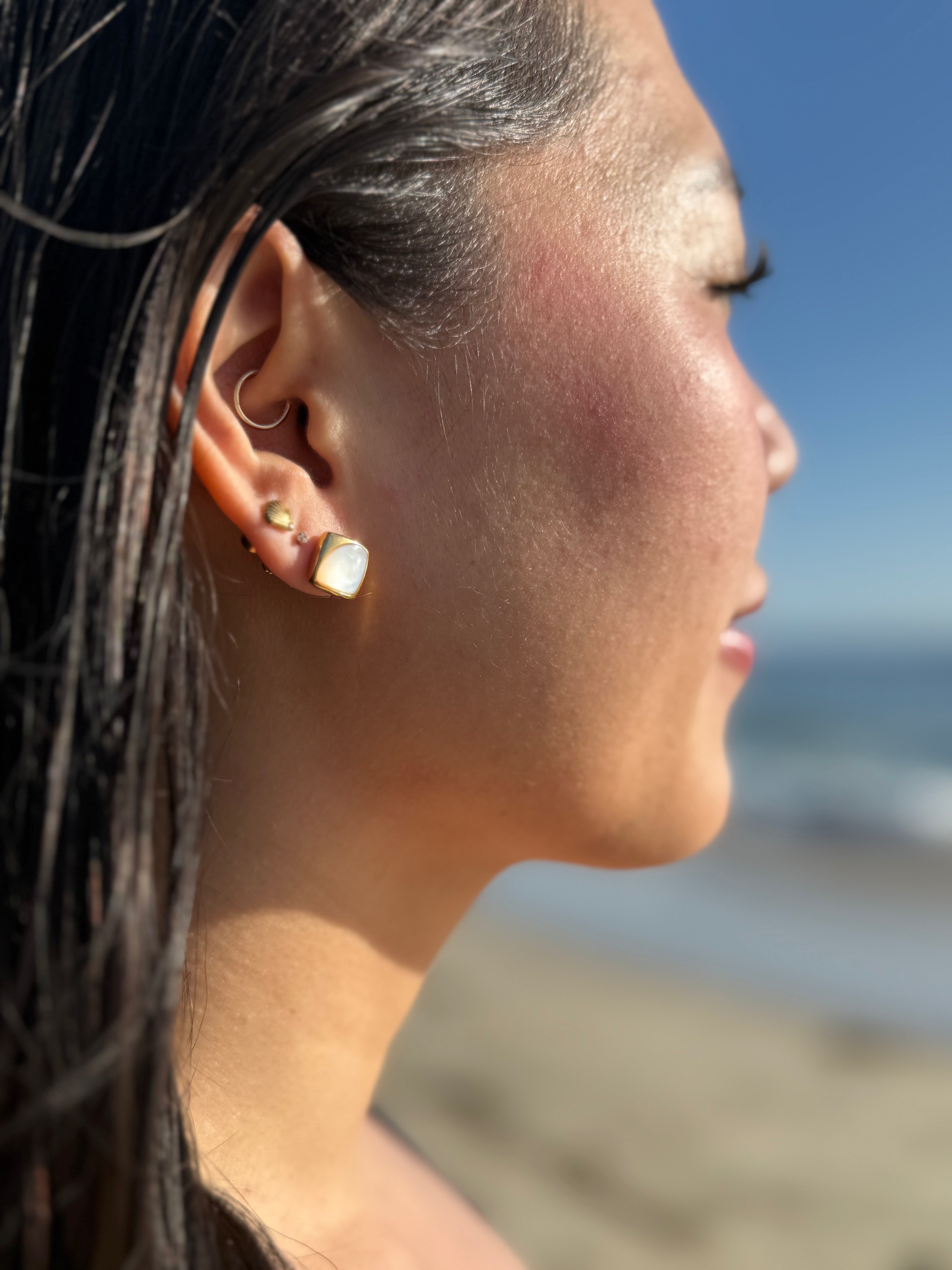 Waterproof, tarnish-resistant, and effortlessly versatile—these earrings are made for surf days, sunset dinners, and everything in between. Pair this with our Mother-of-Pearl Horizon ring for a matching set!