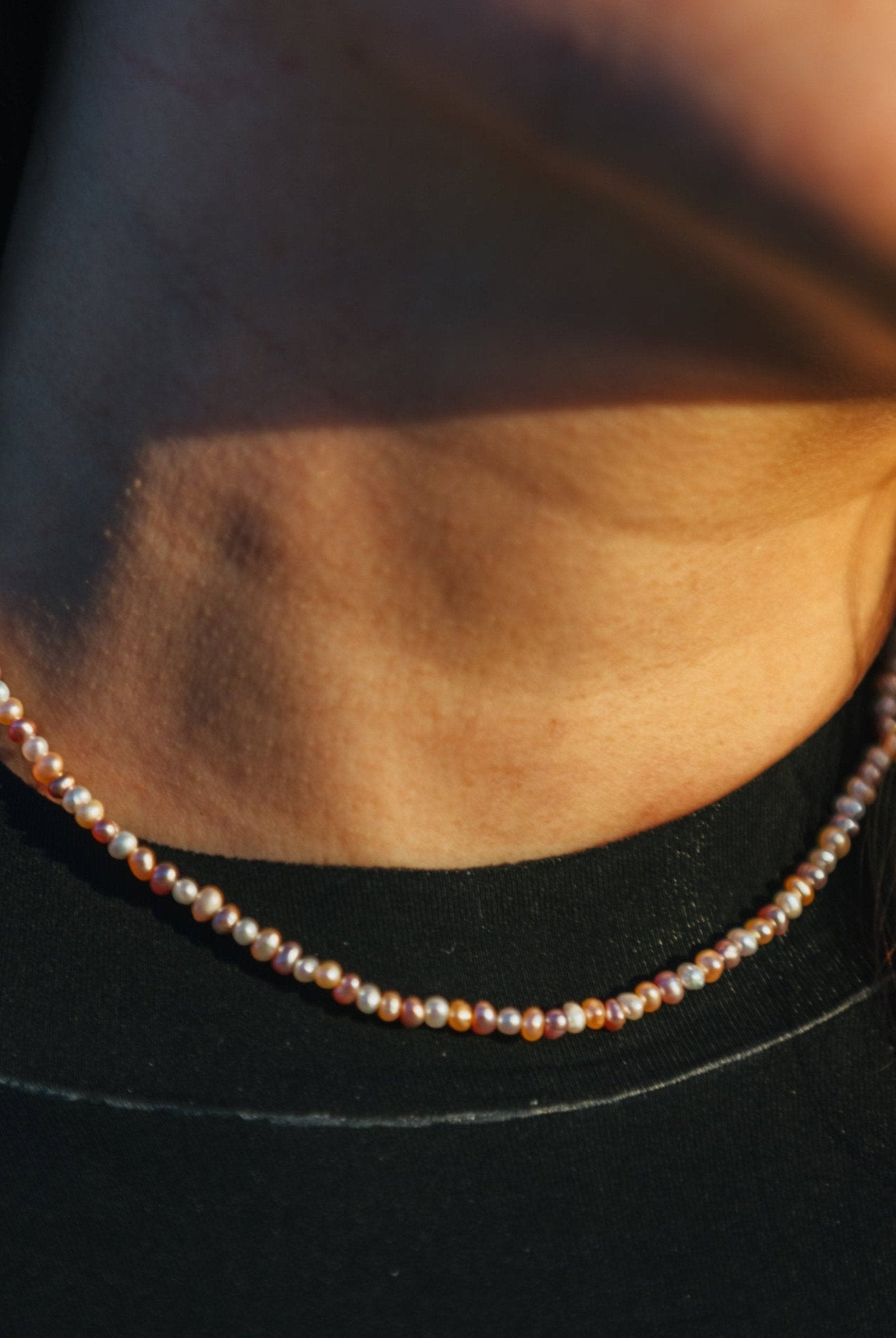 Add a playful pop of color to your look with the Rainbow Mini Pearl Choker Necklace. Featuring a delicate mix of freshwater pearls and vibrant glass beads, this handmade piece brings a laid-back, beachy vibe with a fun, modern twist. Perfect for layering or wearing solo.