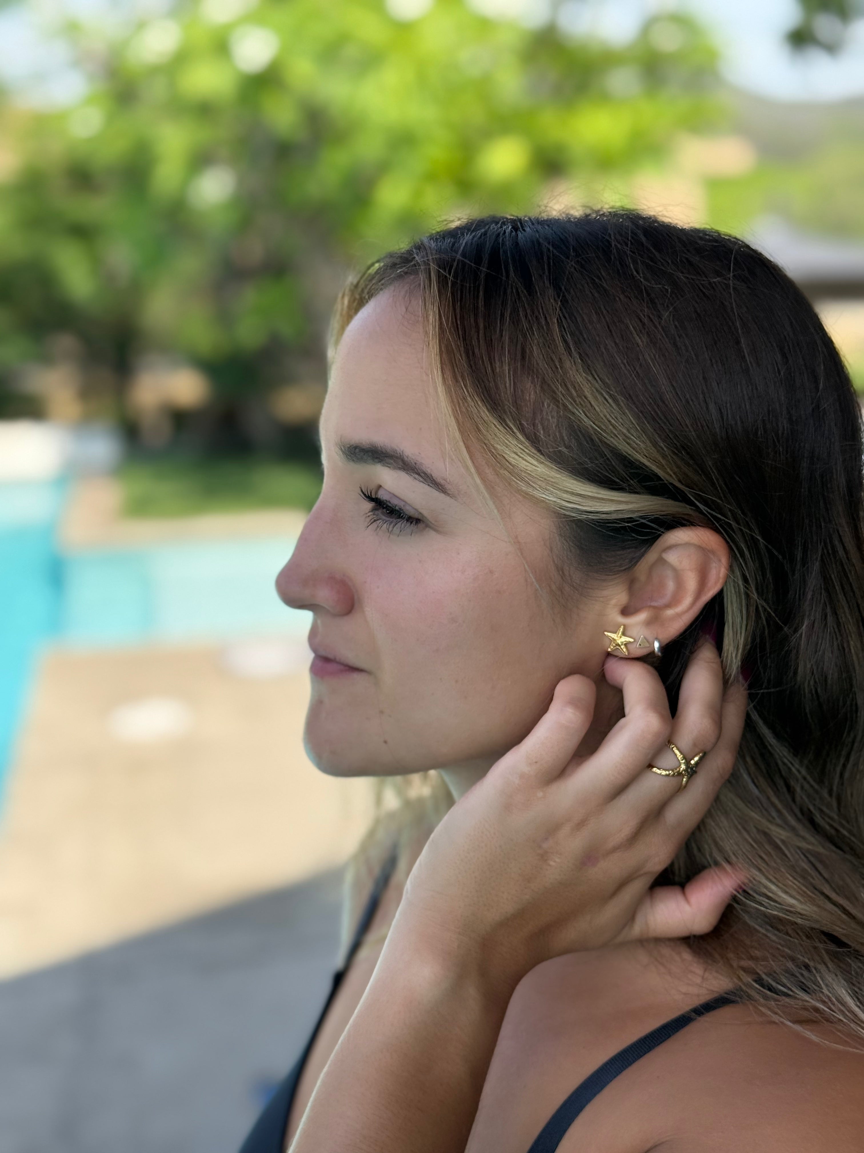 Ocean whimsy in jewelry form. These playful starfish studs bring a little magic from the tidepools to your jewelry stack. Tarnish-free and made to stay put, they’re perfect for surf sessions, summer dates, and everything in between.